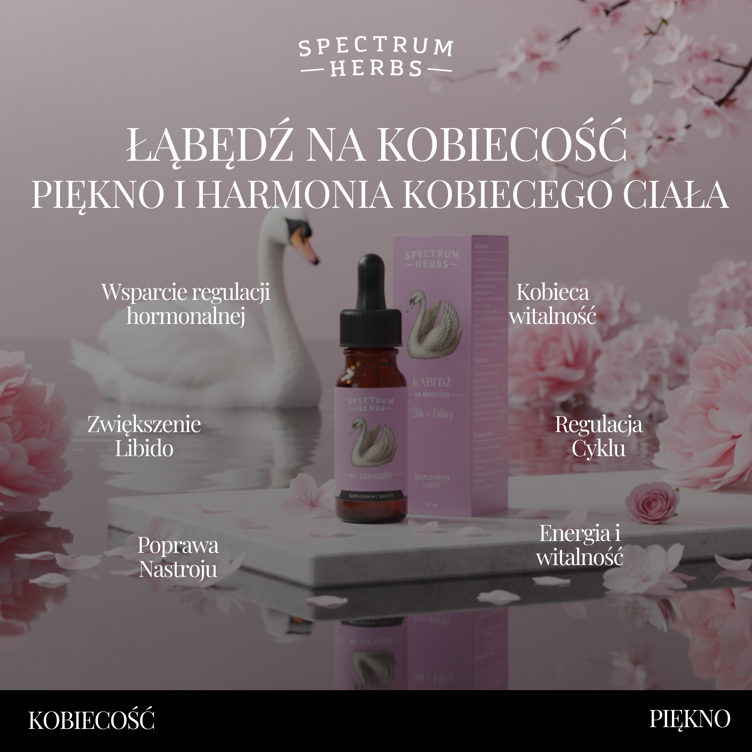 Łabędź to naturalne wsparcie kobiecości na każdym etapie życia. Synergia pięciu adaptogenów harmonizuje cykl, wspiera libido, poprawia nastrój i pomaga utrzymać równowagę emocjonalną. Formuła stworzona przez kobiety dla kobiet – abyś mogła czuć się pełna energii, piękna i pożądana każdego dnia.